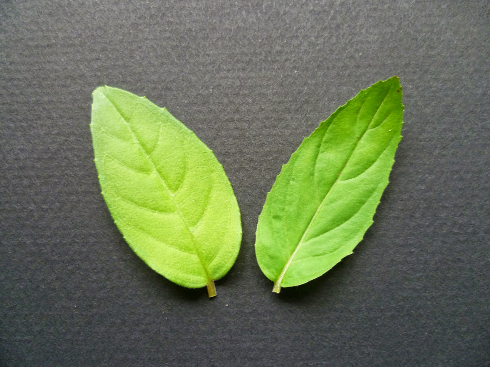 | Verenpisaran lehti vertailussa lehtohorsmaan (Epilobium montanum). |